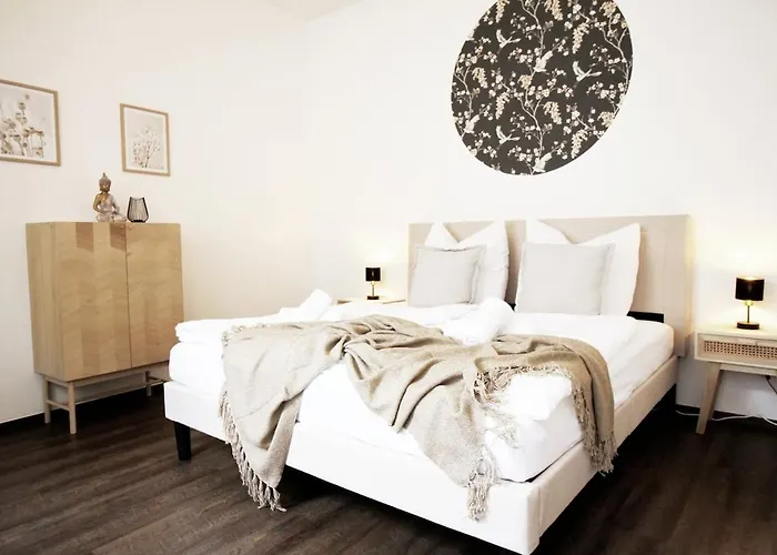 Se quiser ficar no bairro Neudorf-Nord em Duisburgo, o Asia Suite L 3 Schlafzimmer I Sauna L 400M Bis Uni I Messe I Iga 27 Duisburgo de 144 m² é uma boa escolha, localizado a caminhada de 17 minutos do Zoológico Duisburg. Este apartamento de 1 quartos também tem terraço com vista para o átrio.
